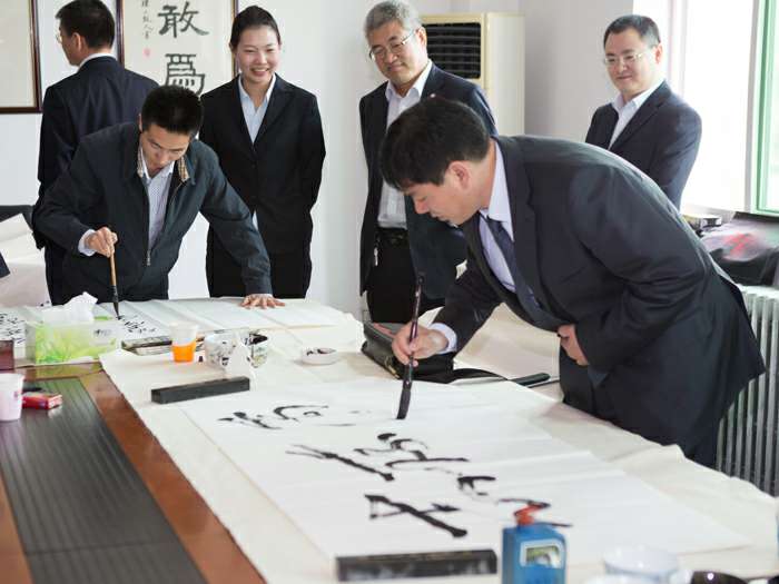 为弘扬传统文化,丰富员工业余生活,5月6日上午,开云官方端网站登录入口-开云(中国)举办了首届书画艺术学习交流活动。本次活动邀请了中国书法家协会会员孟云飞博士、中国书法家协会理事张铜彦先生、中国书法家协会编辑出版委员会副主任王荣生教授、人民艺术家协会理事于瑛先生等国内知名书画大师,各位书画大师在活动现场进行了艺术创作表演,挥毫泼墨,交流技艺,为开云官方端网站登录入口-开云(中国)留下了数十副墨宝,还对部分员工的书画作品进行了悉心指导。公司员工现场欣赏了书画大师的艺术创作,并聆听了有关书画艺术鉴赏知识的介绍,部分员工还在活动现场进行创作,听取书画大师的讲解示范和点评。